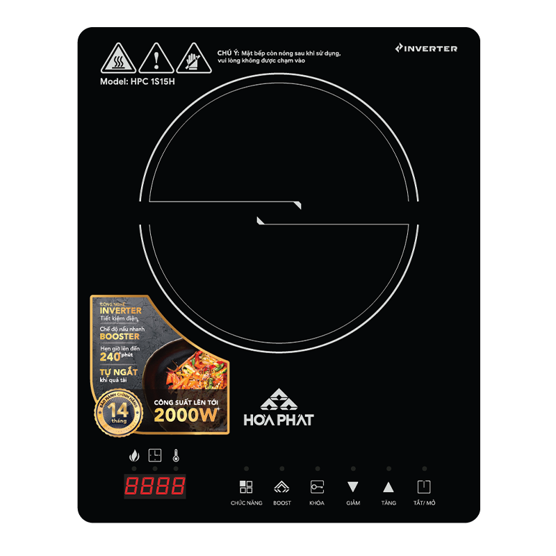 Bếp điện từ Hòa Phát HPC 1S15H được trang bị công suất tối đa 2000W, cho khả năng gia nhiệt nhanh và ổn định.