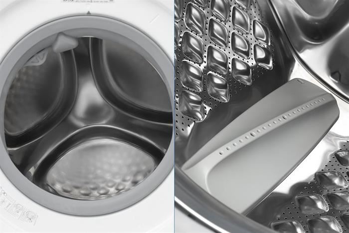 Về chất liệu, phần nắp máy giặt được hoàn thiện bằng kính cường lực kết hợp cùng nhựa ABS, vừa bền bỉ lại đảm bảo tính thẩm mỹ cho thiết bị. Phía trong, lồng giặt được làm từ chất liệu thép không gỉ cứng cáp, có tuổi thọ cao. Hơn nữa, chất liệu này có khả năng kháng khuẩn, hạn chế bám bẩn tốt nên việc vệ sinh lồng giặt định kỳ cũng khá đơn giản.