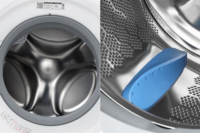 Phần nắp máy giặt là sự kết hợp giữa kính cường lực và nhựa ABS, vừa đảm bảo được tính thẩm mỹ, vừa có độ bền cao. Bên trong, lồng giặt được hoàn thiện bằng thép không gỉ sáng bóng, bền bỉ. Hơn nữa thép không gỉ là chất liệu ít bám bẩn nên sau khi sử dụng, người dùng có thể vệ sinh lồng giặt dễ dàng.