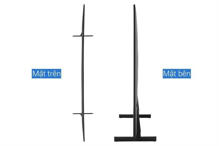 - Chân đế kim loại thiết kế hình chữ T lắp đặt ở 2 bên cạnh dưới của tivi giúp đặt thiết bị thăng bằng trên kệ tủ. Nếu tháo rời chân đế ra thì bạn có thể sắp đặt theo kiểu gắn tường giúp không gian phòng thêm rộng rãi.