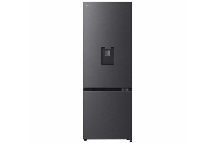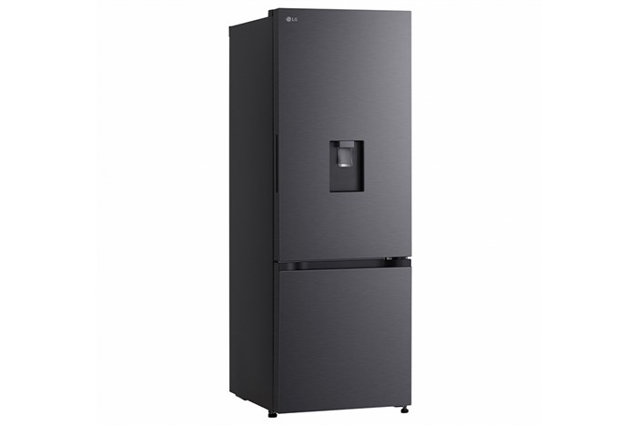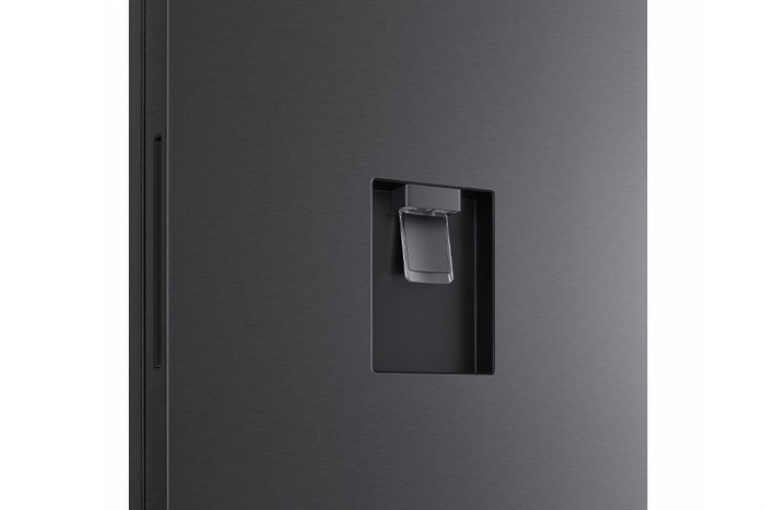 - Tủ lạnh có ngăn đá phía dưới, cùng với ngăn lấy nước ngoài có tông màu đen chủ đạo hiện đại, sang trọng, mang đến giá trị thẩm mỹ cao cho không gian nội thất mà gia đình bạn bố trí tủ.
