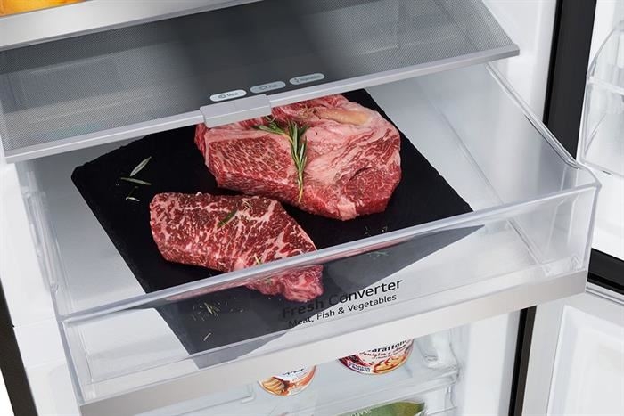 - Ngăn đông mềm Fresh Converter với 3 mức điều chỉnh nhiệt độ linh hoạt (-2°C, 0°C, 3°C), bạn có thể dễ dàng bảo quản các loại thực phẩm cần chế biến hàng ngày như thịt, cá, hải sản mà không cần chờ rã đông.