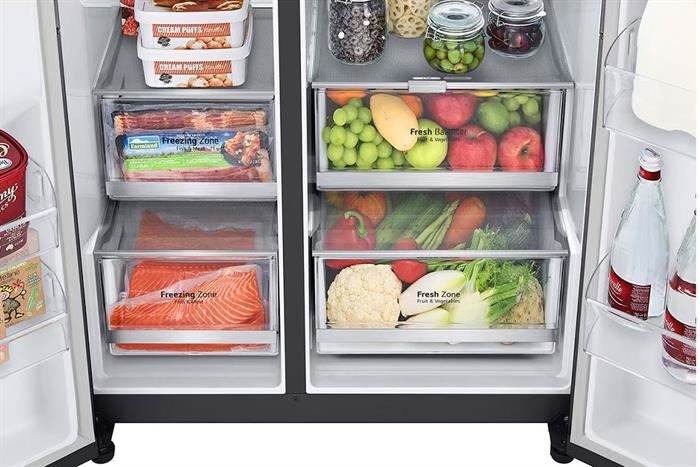- Ngăn rau củ cân bằng ẩm lưới mắt cáo 2 chế độ Fresh Balancer được trang bị thêm tấm lưới giúp hơi nước có từ rau củ sẽ được giữ lại nhờ đó đảm bảo độ ẩm giúp trái cây luôn tươi ngon. Đặc biệt có hai chế độ là Fruit và Vegetables giúp bạn tùy chỉnh với lượng rau củ có bên trong ngăn.